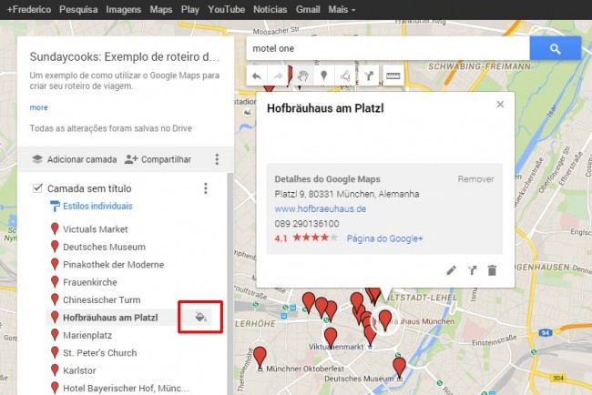 Depois de marcar seus pontos de interesse no seu roteiro de viagem do Google Maps, você perceberá que falta um pouco de organização, pois todos eles têm o mesmo ícone e a mesma cor.